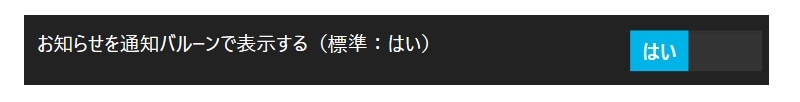 この通知バルーンを表示させたくない場合は、次のスイッチを「いいえ」に切り替えてください。
