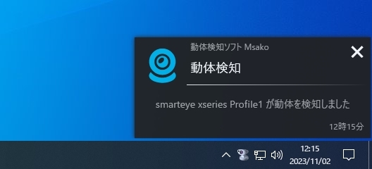 タスクバーの通知領域に最小化して使っているときににイベントが発生すると、次のような通知バルーンがスクリーンの下隅に表示されます。
