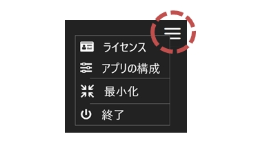 メイン画面の右上隅にあるメニューアイコン をクリックすると次のようなメニューが現れます。