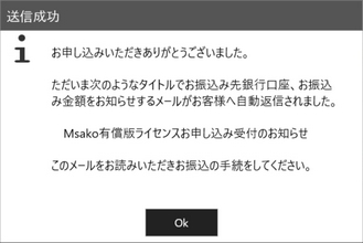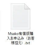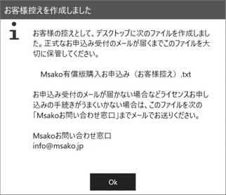 Msako有償版購入お申込み(お客様控え) という名前のテキストファイル(拡張子が.txt)がデスクトップにできているはずですので確認してください。