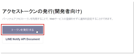 つづいてマイページに移動して「トークンを発行する」を選びます。